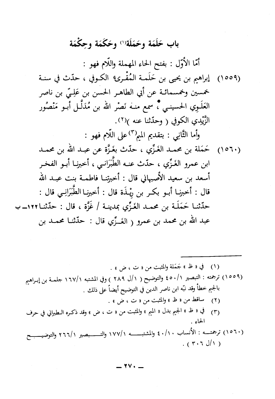 1559 - إِبْرَاهِيم بن يحيى بن حلمة المقرىء الْكُوفِي حدث فِي سنة خمسين وَخَمْسمِائة عَن أبي الطَّاهِر الْحسن بن عَليّ بن نَاصِر الْعلوِي الْحُسَيْنِي سمع مِنْهُ نصر الله بن مدلل أَبُو مَنْصُور الزيدي الْكُوفِي وَحدثنَا عَنهُ