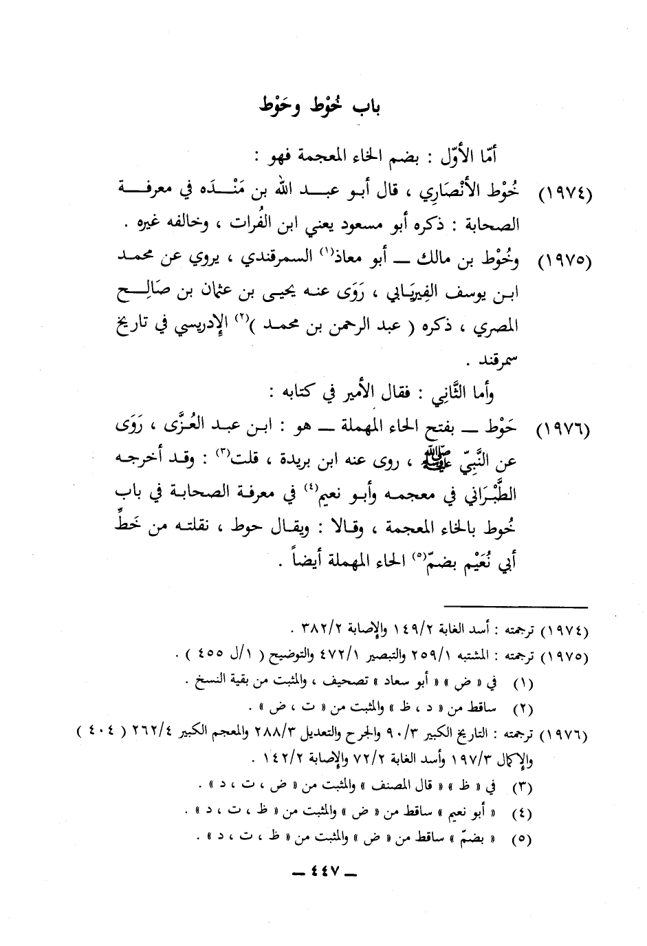 1974 - خوط الْأنْصَارِيّ قَالَ أَبُو عبد الله بن مَنْدَه فِي معرفَة الصَّحَابَة ذكره أَبُو مَسْعُود يَعْنِي ابْن الْفُرَات وَخَالفهُ غَيره