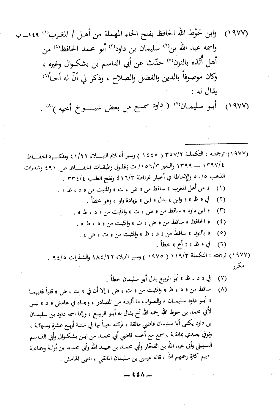 1977 - وَابْن حوط الله الْحَافِظ بِفَتْح الْحَاء الْمُهْملَة من أهل الْمغرب واسْمه عبد الله بن سُلَيْمَان بن دَاوُد أَبُو مُحَمَّد الْحَافِظ من أهل أنده بالنُّون حدث عَن أبي الْقَاسِم بن بشكوال وَغَيره وَكَانَ مَوْصُوفا بِالدّينِ وَالْفضل وَالصَّلَاح وَذكر لي أَن لَهُ أَخا يُقَال لَهُ