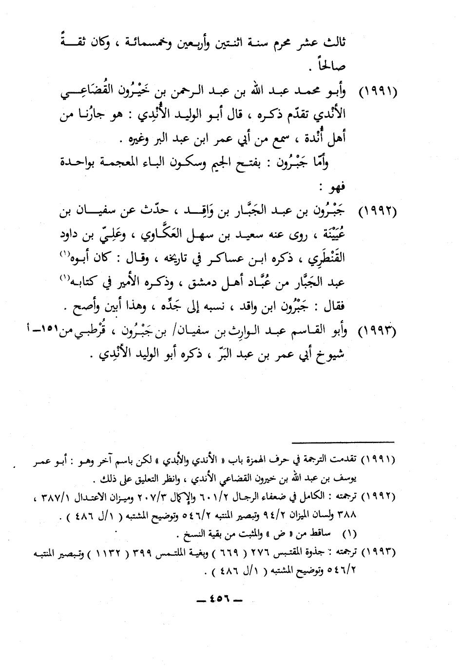 1991 - وَأَبُو مُحَمَّد عبد الله بن عبد الرَّحْمَن بن خيرون الْقُضَاعِي الأندي تقدم ذكره قَالَ أَبُو الْوَلِيد الأندي هُوَ جارنا من أهل أندة سمع من أبي عمر ابْن عبد الْبر وَغَيره