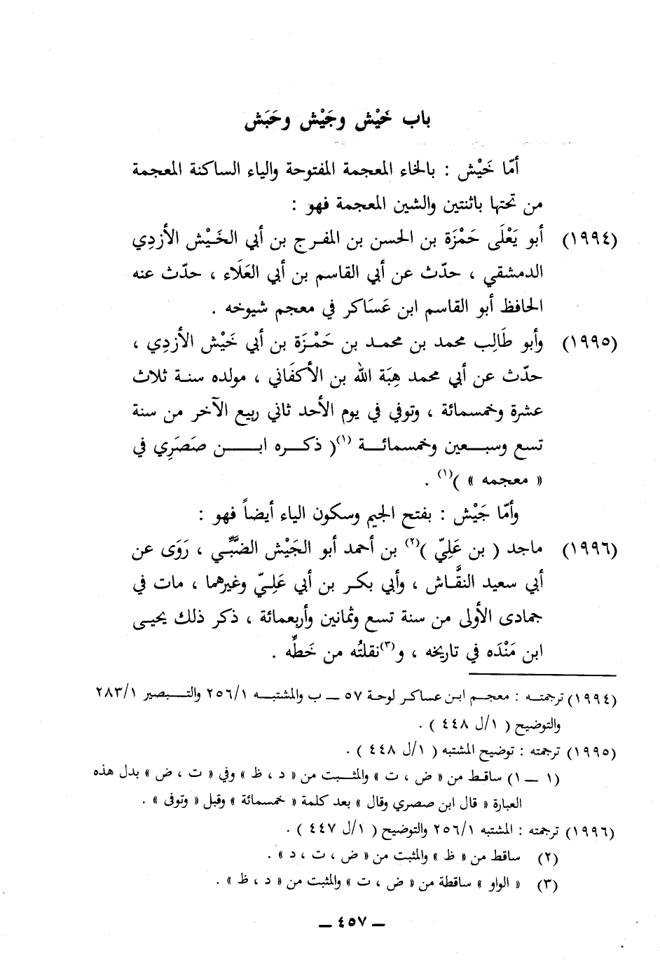 1996 - ماجد بن عَليّ بن أَحْمد أَبُو الْجَيْش الضَّبِّيّ روى عَن ابي سعيد النقاش وَأبي بكر بن أبي عَليّ وَغَيرهمَا مَاتَ فِي جُمَادَى الأولى من سنة تسع وَثَمَانِينَ وَأَرْبَعمِائَة ذكر ذَلِك يحيى ابْن مَنْدَه فِي تَارِيخه ونقلته من خطه