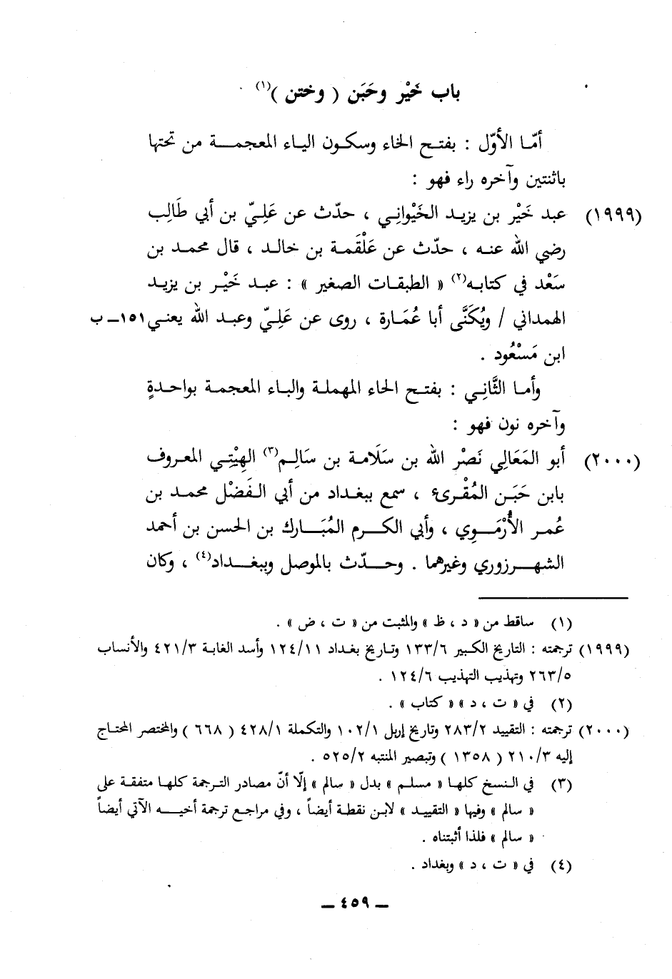 1999 - عبد خير بن يزِيد الخيواني حدث عَن عَليّ بن أبي طَالب رَضِي الله عَنهُ حدث عَن عَلْقَمَة بن خَالِد قَالَ مُحَمَّد بن سعد فِي كِتَابه الطَّبَقَات الصَّغِير عبد خير بن يزِيد الْهَمدَانِي ويكنى أَبَا عمَارَة روى عَن عَليّ وَعبد الله يَعْنِي ابْن مَسْعُود