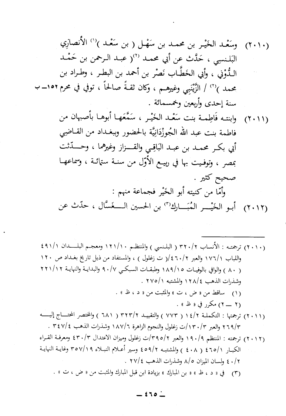 2010 - وَسعد الْخَيْر بن مُحَمَّد بن سهل بن سعد الْأنْصَارِيّ البلنسي حدث عَن أبي مُحَمَّد عبد الرَّحْمَن بن حمد الدوني وَأبي الْخطاب نصر بن أَحْمد بن البطر وطراد بن مُحَمَّد الزَّيْنَبِي وَغَيرهم وَكَانَ ثِقَة صَالحا توفّي فِي محرم سنة إِحْدَى واربعين وَخَمْسمِائة