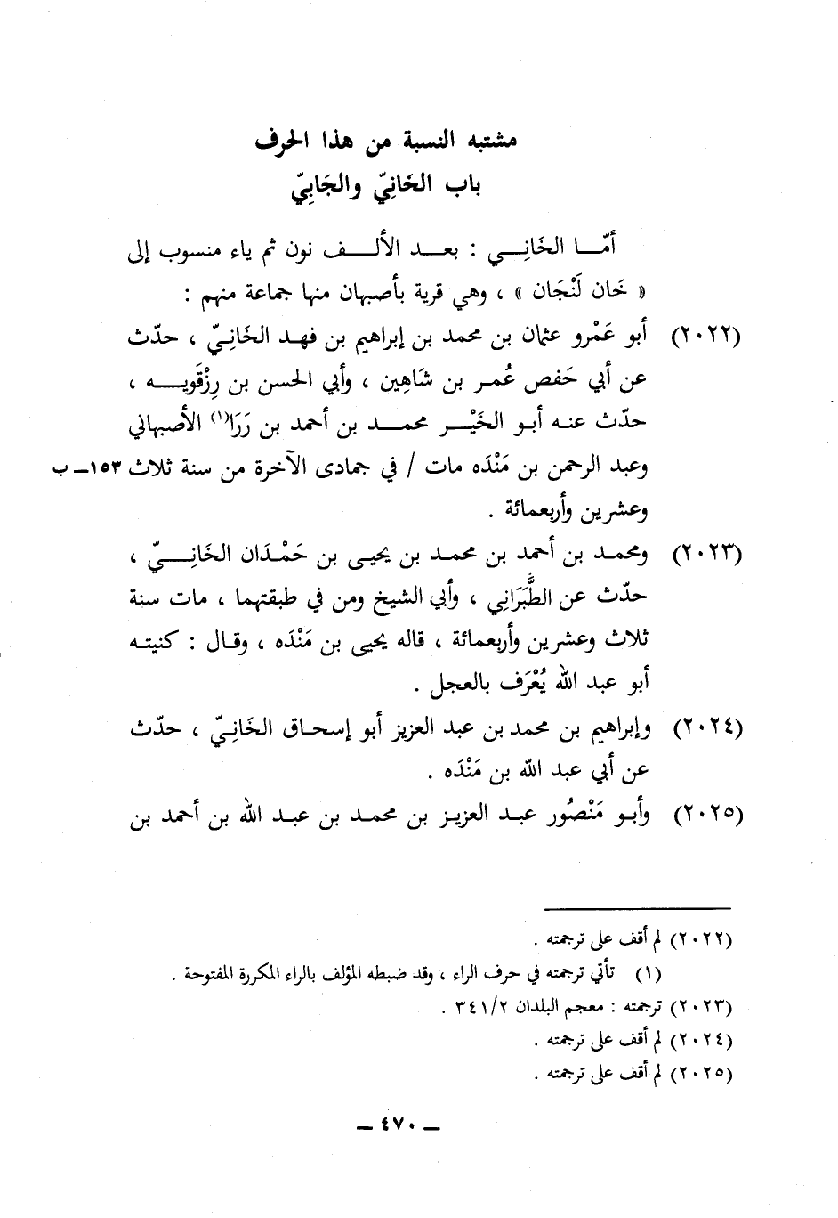 2023 - وَمُحَمّد بن أَحْمد بن مُحَمَّد بن يحيى بن حمدَان الخاني حدث عَن الطَّبَرَانِيّ وَأبي الشَّيْخ وَمن فِي طبقتهما مَاتَ سنة ثَلَاث وَعشْرين وَأَرْبَعمِائَة قَالَه يحيى بن مَنْدَه وَقَالَ كنيته ابو عبد الله يعرف بالعجل