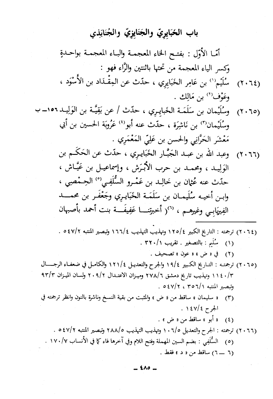 2065 - وَسليمَان بن سَلمَة الخبايري حدث عَن بَقِيَّة بن الْوَلِيد وَسليمَان بن نَاشِرَة حدث عَنهُ أَبُو عرُوبَة الْحُسَيْن بن ابي معشر الْحَرَّانِي وَالْحسن بن عَليّ المعمري