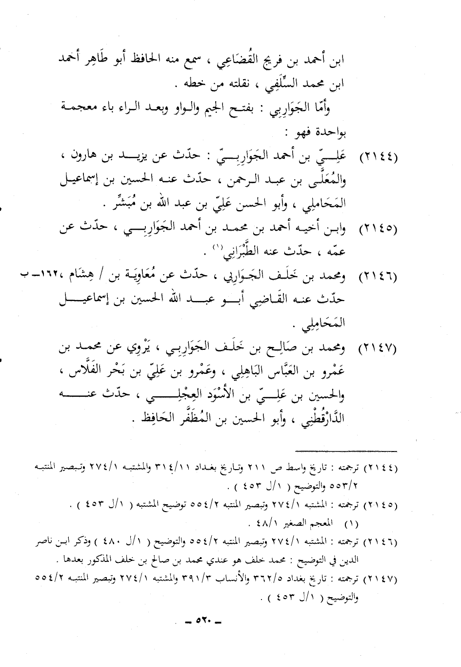 2147 - وَمُحَمّد بن صَالح بن خلف الجواربي يروي عَن مُحَمَّد بن عَمْرو بن الْعَبَّاس الْبَاهِلِيّ وَعَمْرو بن عَليّ بن بَحر الفلاس وَالْحُسَيْن بن عَليّ بن الْأسود الْعجلِيّ حدث عَنهُ الدَّارَقُطْنِيّ وَأَبُو الْحُسَيْن بن المظفر الْحَافِظ
