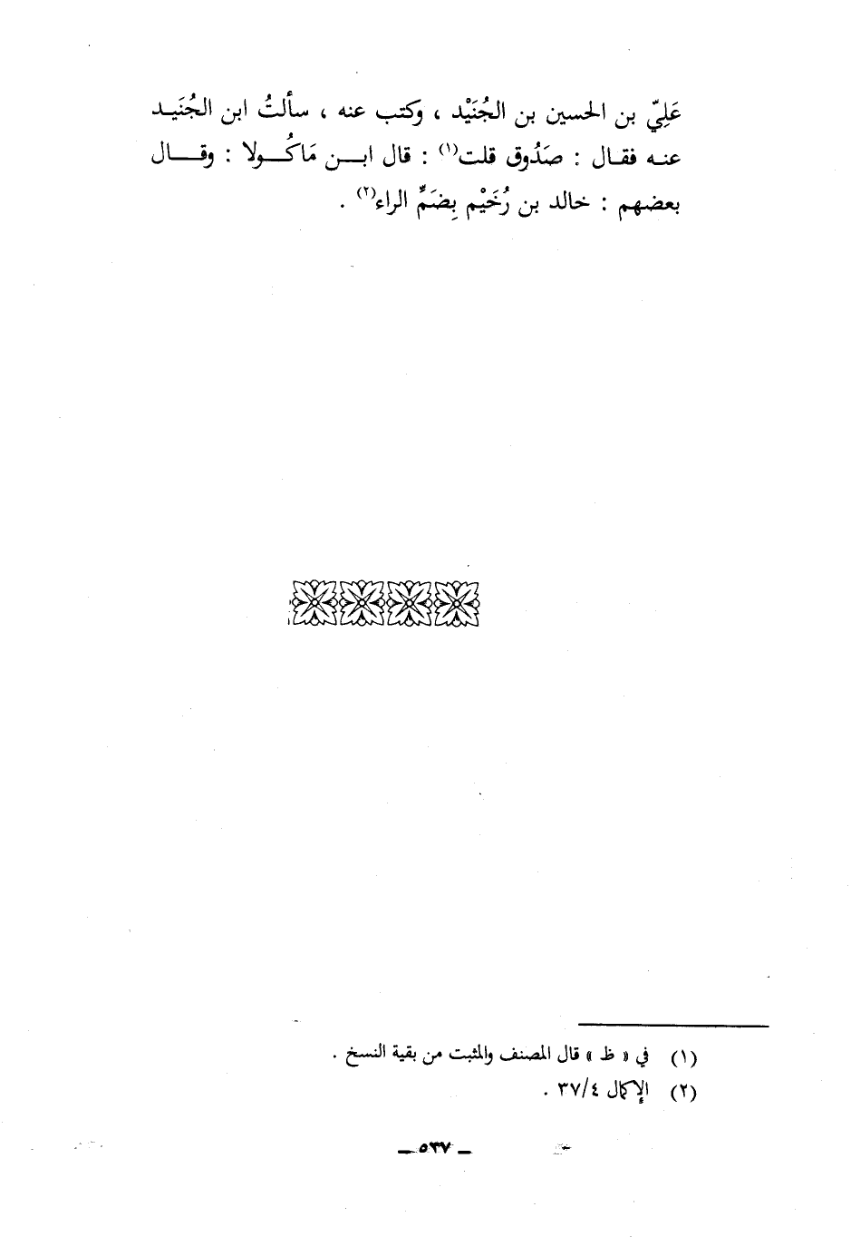 عَليّ بن الْحُسَيْن بن الْجُنَيْد وَكتب عَنهُ سَأَلت ابْن الْجُنَيْد عَنهُ فَقَالَ صَدُوق قلت قَالَ ابْن مَاكُولَا وَقَالَ بَعضهم خَالِد بن رخيم بِضَم الرَّاء