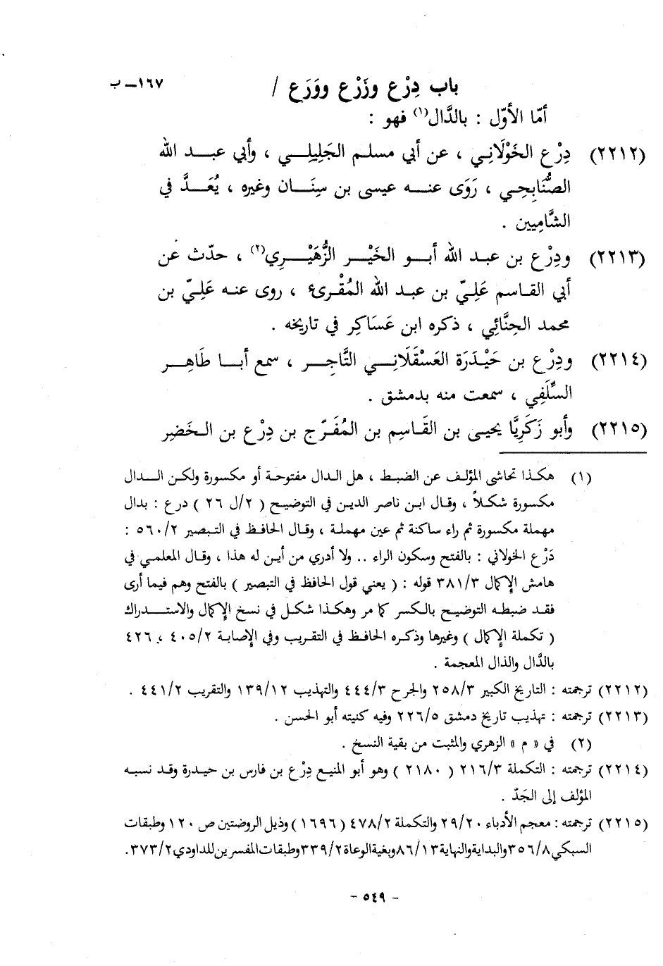 2213 - وَدرع بن عبد الله أَبُو الْخَيْر الزهيري حدث عَن أبي الْقَاسِم عَليّ بن عبد الله المقرىء روى عَنهُ عَليّ بن مُحَمَّد الجنائي ذكره ابْن عَسَاكِر فِي تَارِيخه