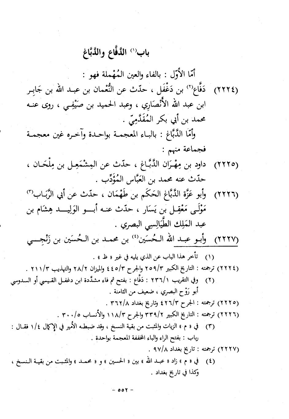 2224 - دفاع بن دَغْفَل حدث عَن النُّعْمَان بن عبد الله بن جَابر ابْن عبد الله الْأنْصَارِيّ وَعبد الحميد بن صَيْفِي روى عَنهُ مُحَمَّد بن أبي بكر الْمقدمِي