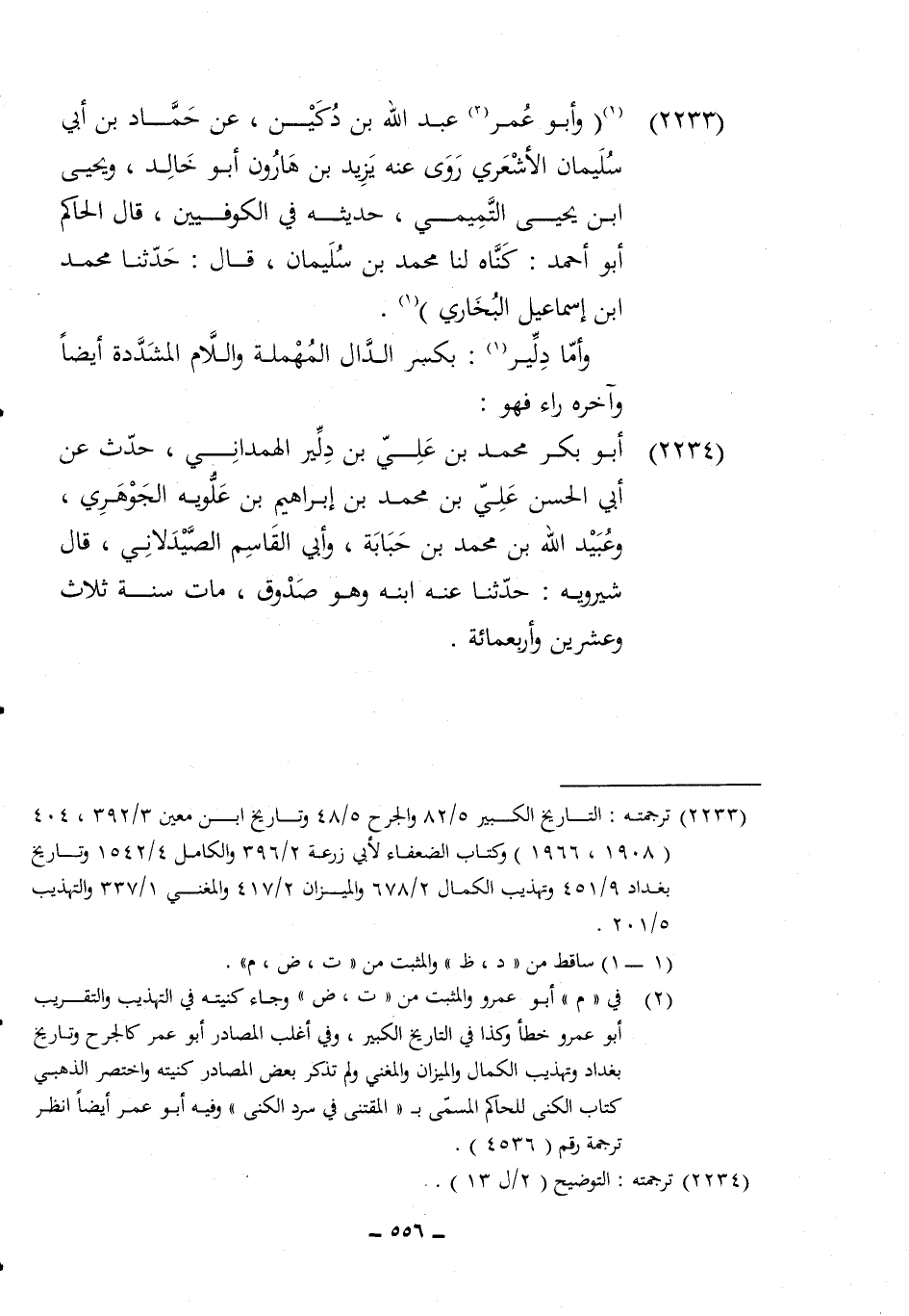 2234 - أَبُو بكر مُحَمَّد بن عَليّ بن دلير الْهَمدَانِي حدث عَن أبي الْحسن عَليّ بن مُحَمَّد بن إِبْرَاهِيم بن عُلْوِيَّهُ الْجَوْهَرِي وَعبيد الله بن مُحَمَّد بن حبابة وابي الْقَاسِم الصيدلاني قَالَ شيرويه عَنهُ ابْنه وَهُوَ صَدُوق مَاتَ سنة ثَلَاث وَعشْرين واربعمائة