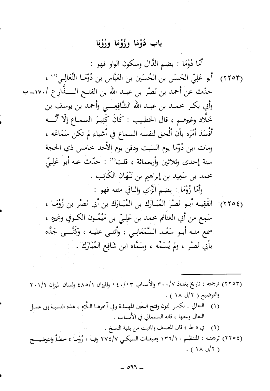 2254 - الْفَقِيه أَبُو نصر الْمُبَارك بن الْمُبَارك بن أبي نصر بن زوما سمع من أبي الْغَنَائِم مُحَمَّد بن عَليّ بن مَيْمُون الْكُوفِي وَغَيره سمع مِنْهُ أَبُو سعد السَّمْعَانِيّ وَأثْنى عَلَيْهِ وكنى جده بِأبي نصر وَلم يسمه وَسَماهُ ابْن شَافِع الْمُبَارك