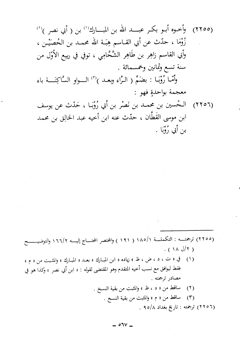2256 - الْحُسَيْن بن مُحَمَّد بن نصر بن أبي روبا حدث عَن يُوسُف ابْن مُوسَى الْقطَّان حدث عَنهُ ابْن أَخِيه عبد الْخَالِق بن مُحَمَّد بن أبي روبا