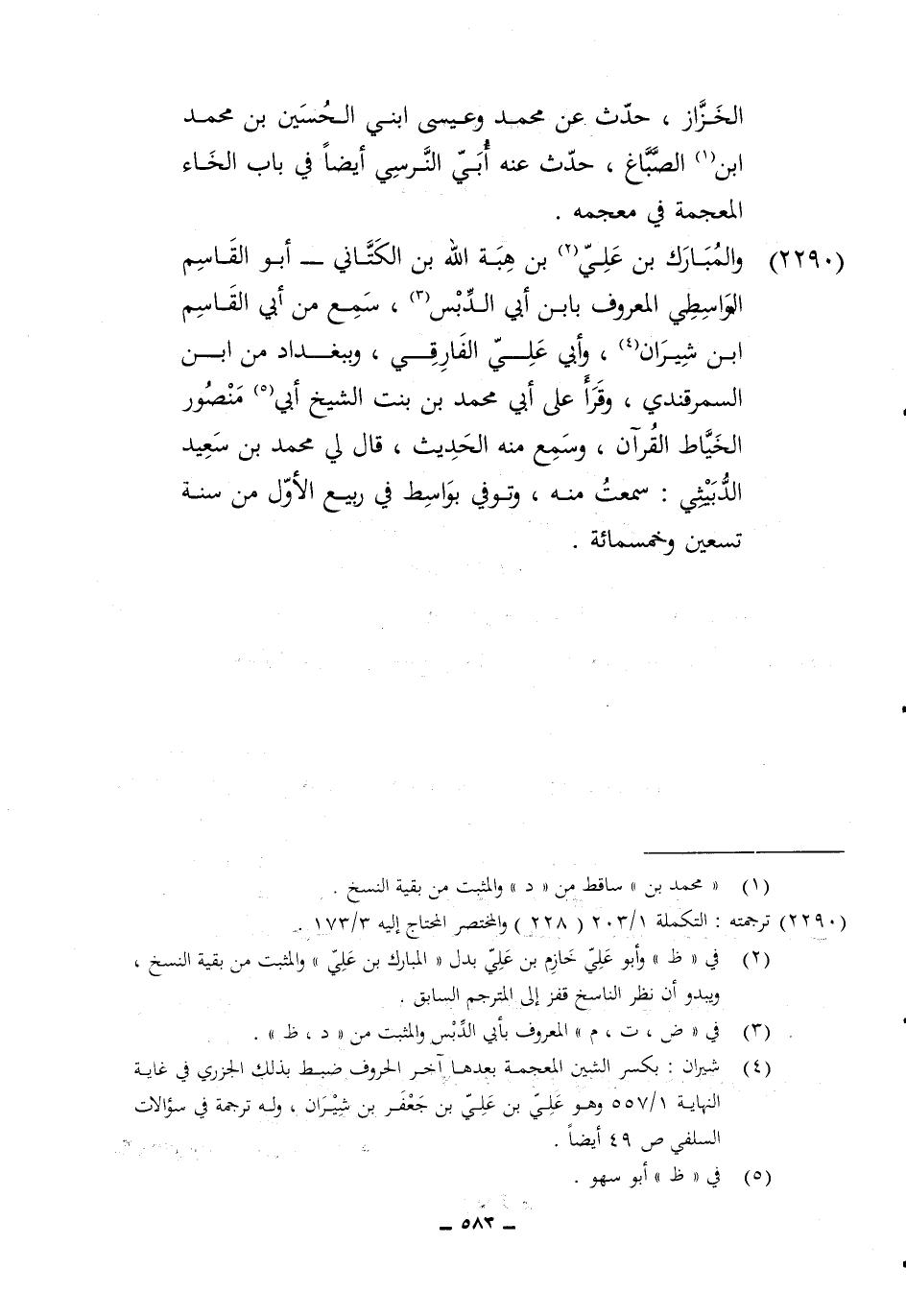 2290 - وَالْمبَارك بن عَليّ بن هبة الله بن الكتاني أَبُو الْقَاسِم الوَاسِطِيّ الْمَعْرُوف بِابْن أبي الدبس سمع من أبي الْقَاسِم ابْن شيران وَأبي عَليّ الفارقي وببغداد من ابْن السَّمرقَنْدِي وَقَرَأَ على أبي مُحَمَّد بن بنت الشَّيْخ أبي مَنْصُور الْخياط الْقُرْآن وَسمع مِنْهُ الحَدِيث قَالَ لي مُحَمَّد بن سعيد الدبيثي سَمِعت مِنْهُ وَتُوفِّي بواسط فِي ربيع الأول من سنة تسعين وَخَمْسمِائة