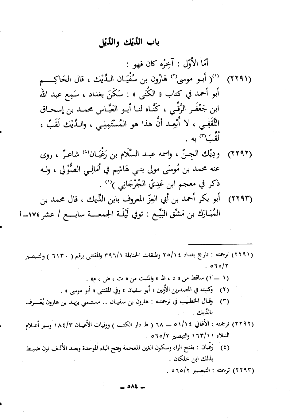 2292 - وديك الْجِنّ واسْمه عبد السَّلَام بن رغبان شَاعِر روى عَنهُ مُحَمَّد بن مُوسَى مولى بني هَاشم فِي أمالي الصولي وَله ذكر فِي مُعْجم ابْن عدي الْجِرْجَانِيّ