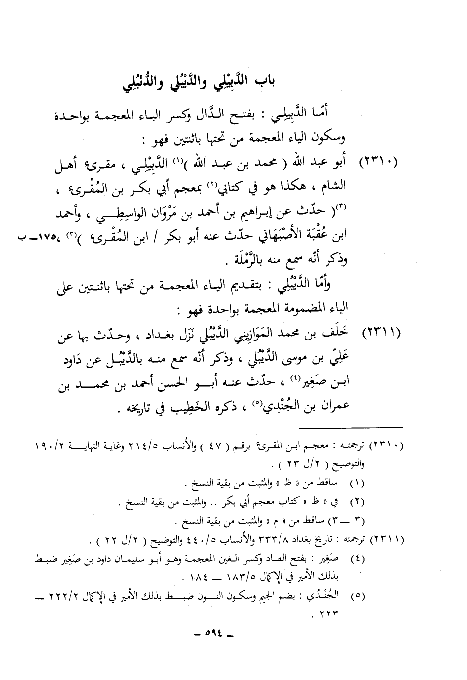 2310 - أَبُو عبد الله مُحَمَّد بن عبد الله الدبيلي مقرىء أهل الشَّام هَكَذَا هُوَ فِي كتابي بمعجم ابي بكر بن المقرىء حدث عَن إِبْرَاهِيم بن أَحْمد بن مَرْوَان الوَاسِطِيّ وَأحمد ابْن عقبَة الْأَصْبَهَانِيّ حدث عَنهُ أَبُو بكر ابْن المقرىء وَذكر أَنه سمع مِنْهُ بالرملة