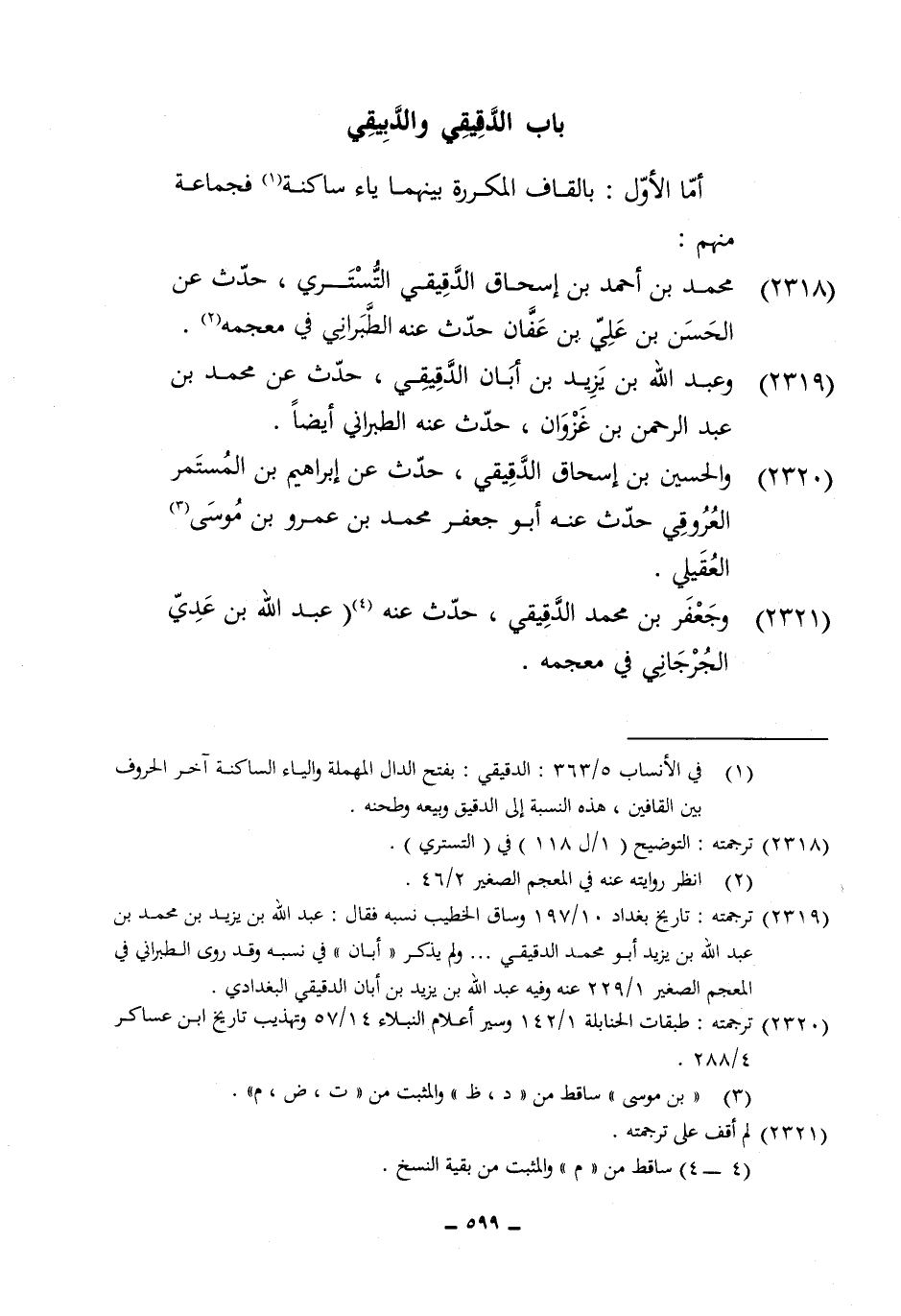 2318 - مُحَمَّد بن أَحْمد بن إِسْحَاق الدقيقي التسترِي حدث عَن الْحسن بن عَليّ بن عَفَّان حدث عَنهُ الطَّبَرَانِيّ فِي مُعْجَمه