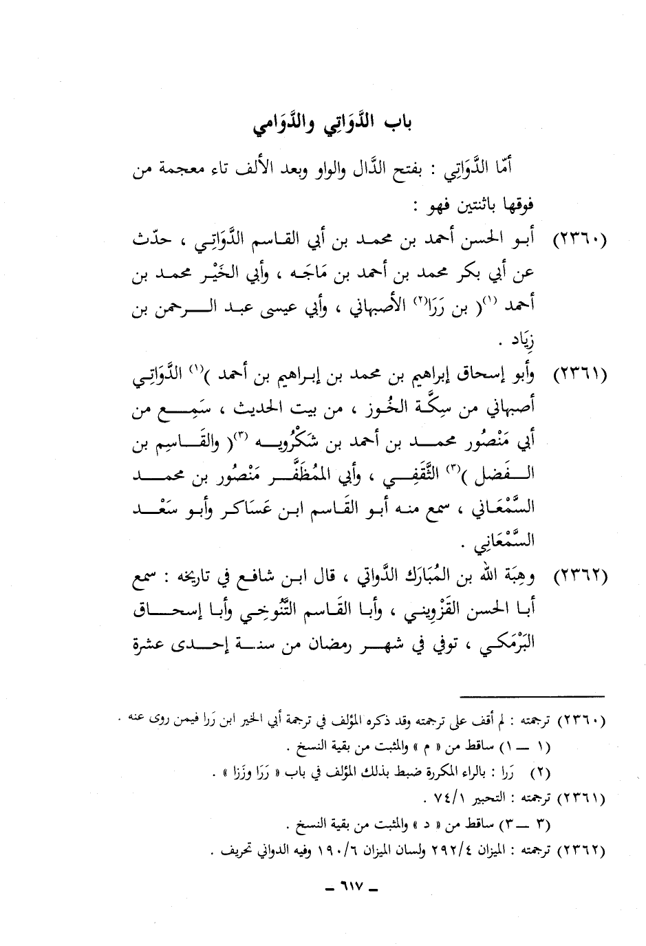2360 - أَبُو الْحسن أَحْمد بن مُحَمَّد بن أبي الْقَاسِم الدواتي حدث عَن ابي بكر مُحَمَّد بن أَحْمد بن ماجة وابي الْخَيْر مُحَمَّد بن أَحْمد بن ررا الْأَصْبَهَانِيّ وابي عِيسَى عبد الرَّحْمَن بن زِيَاد
