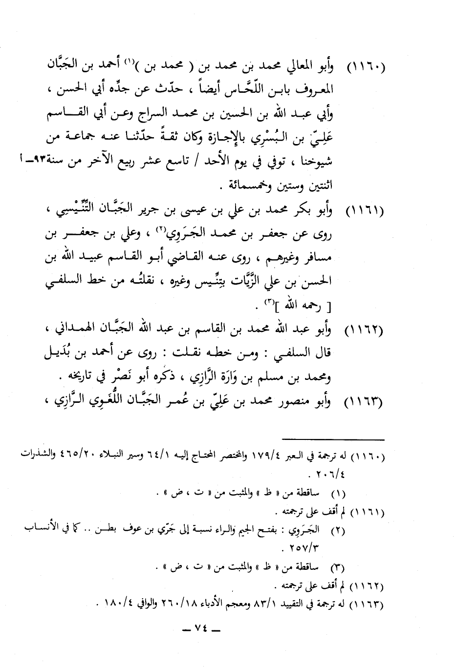 1162 - وَأَبُو عبد الله مُحَمَّد بن الْقَاسِم بن عبد الله الجبان الْهَمدَانِي قَالَ السلَفِي وَمن خطه نقلت روى عَن أَحْمد بن بديل وَمُحَمّد بن مُسلم بن وارة الرَّازِيّ ذكره أَبُو نصر فِي تَارِيخه