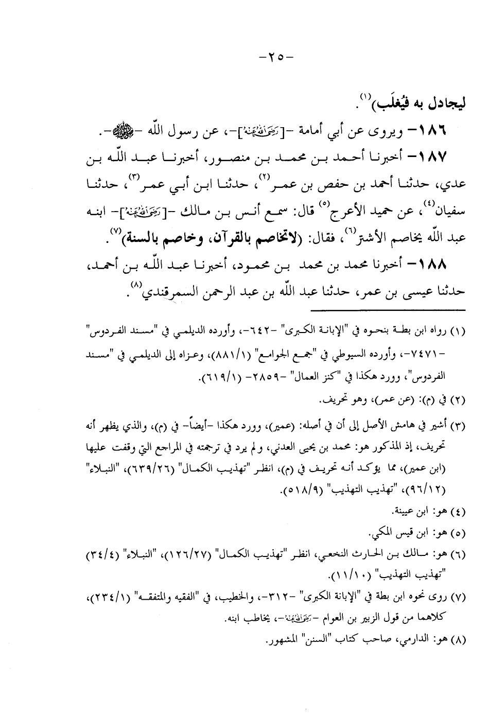 188 - أَخْبَرَنَا مُحَمَّدُ بْنُ مُحَمَّدِ بْنِ مَحْمُودٍ أَخْبَرَنَا عَبْدُ اللَّهِ بْنُ أَحْمَدَ حَدَّثَنَا عِيسَى بْنُ عُمَرَ حَدَّثَنَا عَبْدُ اللَّهِ بْنُ عَبْدِ الرَّحْمَنِ السَّمرقَنْدِي
