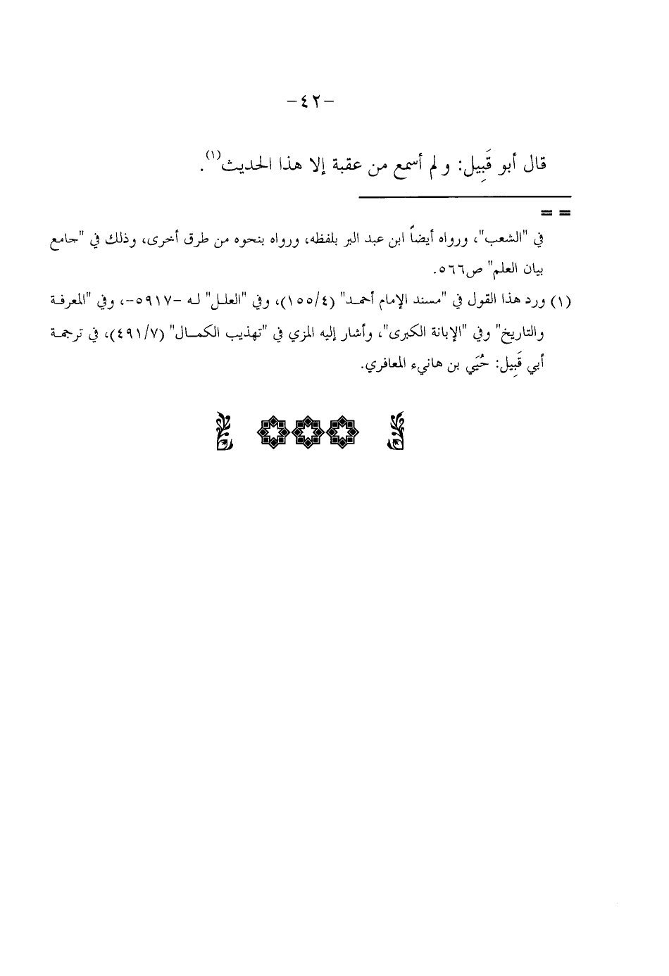 قَالَ أَبُو قَبِيلٍ وَلَمْ أَسْمَعْ مِنْ عُقْبَةَ إِلَا هَذَا الْحَدِيثَ