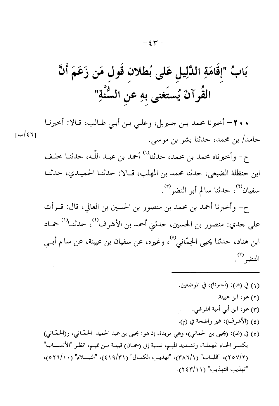 200 - أَخْبَرَنَا مُحَمَّدُ بْنُ جِبْرِيلَ وَعَلِيُّ بْنُ أَبِي طَالِبٍ قَالَا أَخْبَرَنَا حَامِدُ بْنُ مُحَمَّدٍ حَدَّثَنَا بِشْرُ بْنُ مُوسَى