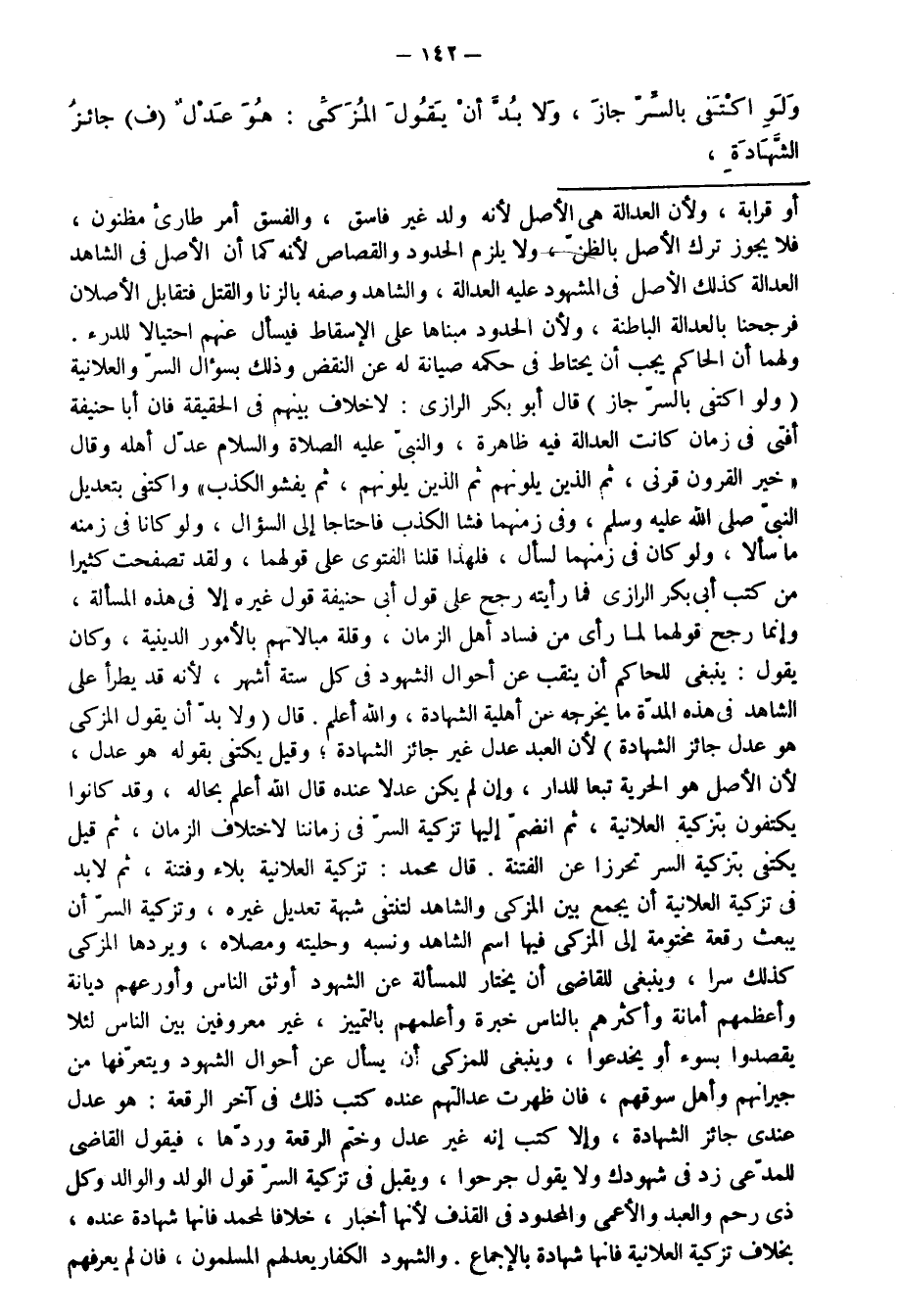 قَالَ أَبُو بَكْرٍ الرَّازِيُّ: لَا خِلَافَ بَيْنَهُمْ فِي الْحَقِيقَةِ فَإِنَّ أَبَا حَنِيفَةَ أَفْتَى فِي زَمَانٍ كَانَتِ الْعَدَالَةُ فِيهِ ظَاهِرَةً، وَالنَّبِيُّ - عَلَيْهِ الصَّلَاةُ وَالسَّلَامُ - عَدَّلَ أَهْلَهُ وَقَالَ: «خَيْرُ الْقُرُونِ قَرْنِي، ثُمَّ الَّذِينَ يَلُونَهُمْ ثُمَ الَّذِينَ يَلُونَهُمْ، ثُمَّ يَفْشُو الْكَذِبُ» وَاكْتَفَى بِتَعْدِيلِ النَّبِيِّ - صَلَّى اللَّهُ عَلَيْهِ وَسَلَّمَ -، وَفِي زَمَنِهِمَا فَشَا الْكَذِبُ فَاحْتَاجَا إِلَى السُّؤَالِ، وَلَوْ كَانَا فِي زَمَانِهِ مَا سَأَلَا، وَلَوْ كَانَ فِي زَمَنِهِمَا لَسَأَلَ، فَلِهَذَا قُلْنَا: الْفَتْوَى عَلَى قَوْلِهِمَا، وَلَقَدْ تَصَفَّحْتُ كَثِيرًا مِنْ كُتُبِ أَبِي بَكْرٍ الرَّازِيِّ فَمَا رَأَيْتُهُ رَجَّحَ عَلَى قَوْلِ أَبِي حَنِيفَةَ قَوْلَ غَيْرِهِ إِلَّا فِي هَذِهِ الْمَسْأَلَةِ، وَإِنَّمَا رَجَّحَ قَوْلَهُمَا لِمَا رَأَى مِنْ فَسَادِ أَهْلِ الزَّمَانِ، وَقِلَّةِ مُبَالَاتِهِمْ بِالْأُمُورِ الدِّينِيَّةِ، وَكَانَ يَقُولُ: يَنْبَغِي لِلْحَاكِمِ أَنْ يُنَقِّبَ عَنْ أَحْوَالِ الشُّهُودِ فِي كُلِّ سِتَّةِ أَشْهُرٍ؛ لِأَنَّهُ قَدْ يَطْرَأُ عَلَى الشَّاهِدِ فِي هَذِهِ الْمُدَّةِ مَا يُخْرِجُهُ عَنْ أَهْلِيَّةِ الشَّهَادَةِ، وَاللَّهُ أَعْلَمُ.