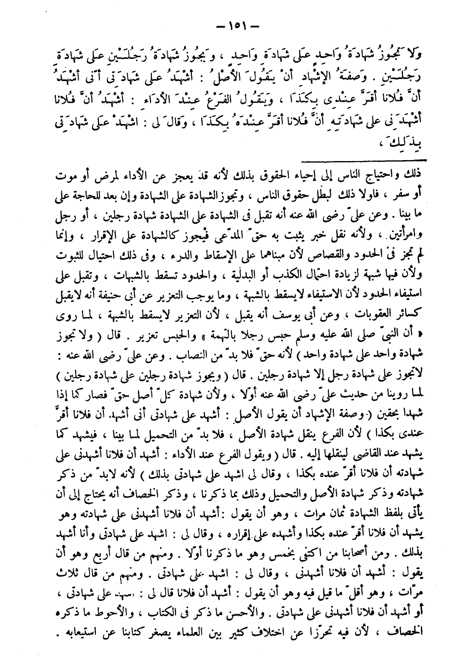 ـــــــــــــــــــــــــــــQذَلِكَ وَاحْتِيَاجُ النَّاسِ إِلَى إِحْيَاءِ الْحُقُوقِ بِذَلِكَ لِأَنَّهُ قَدْ يَعْجِزُ عَنِ الْأَدَاءِ لِمَرَضٍ أَوْ مَوْتٍ أَوْ سَفَرٍ، فَلَوْلَا ذَلِكَ لَبَطَلَ حُقُوقُ النَّاسِ، وَتَجُوزُ الشَّهَادَةُ عَلَى الشَّهَادَةِ وَإِنْ بَعُدَ لِلْحَاجَةِ عَلَى مَا بَيَّنَّا.
