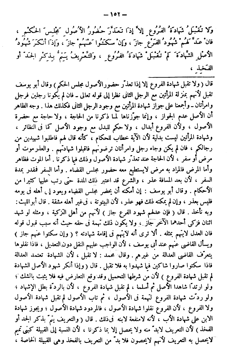 وَلَا تُقْبَلُ شَهَادَةُ الْفُرُوعِ إِلَّا إِذَا تَعَذَّرَ حُضُورُ الْأُصُولِ مَجْلِسَ الْحُكْمِ. فَإِنْ عَدَّلَهُمْ شُهُودُ الْفَرْعِ جَازَ، وَإِنْ سَكَتُوا عَنْهُمْ جَازَ، وَإِذَا أَنْكَرَ شُهُودُ الْأَصْلِ الشَّهَادَةَ لَمْ تُقْبَلْ شَهَادَةُ الْفُرُوعِ، وَالتَّعْرِيفُ يَتِمُّ بِذِكْرِ الْجَدِّ أَوِ الْفَخِذِ،