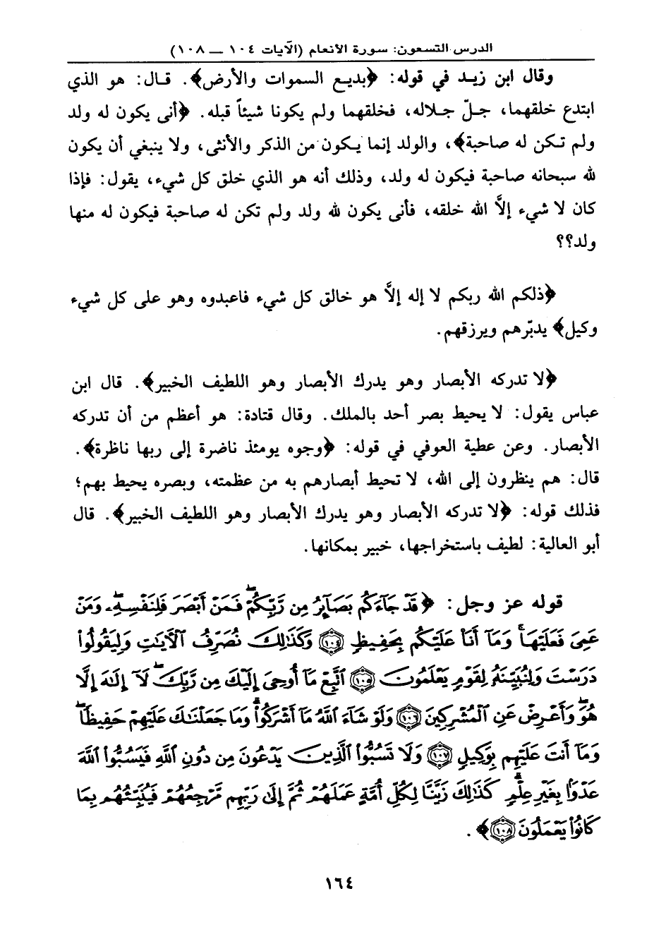{لاَّ تُدْرِكُهُ الأَبْصَارُ وَهُوَ يُدْرِكُ الأَبْصَارَ وَهُوَ اللَّطِيفُ الْخَبِيرُ} . قال ابن عباس: يقول: لا يحيط بصر أحد بالملك. وقال قتادة: هو أعظم من أن تدركه الأبصار. وعن عطية العوفي في قوله: {وُجُوهٌ يَوْمَئِذٍ نَّاضِرَةٌ *
