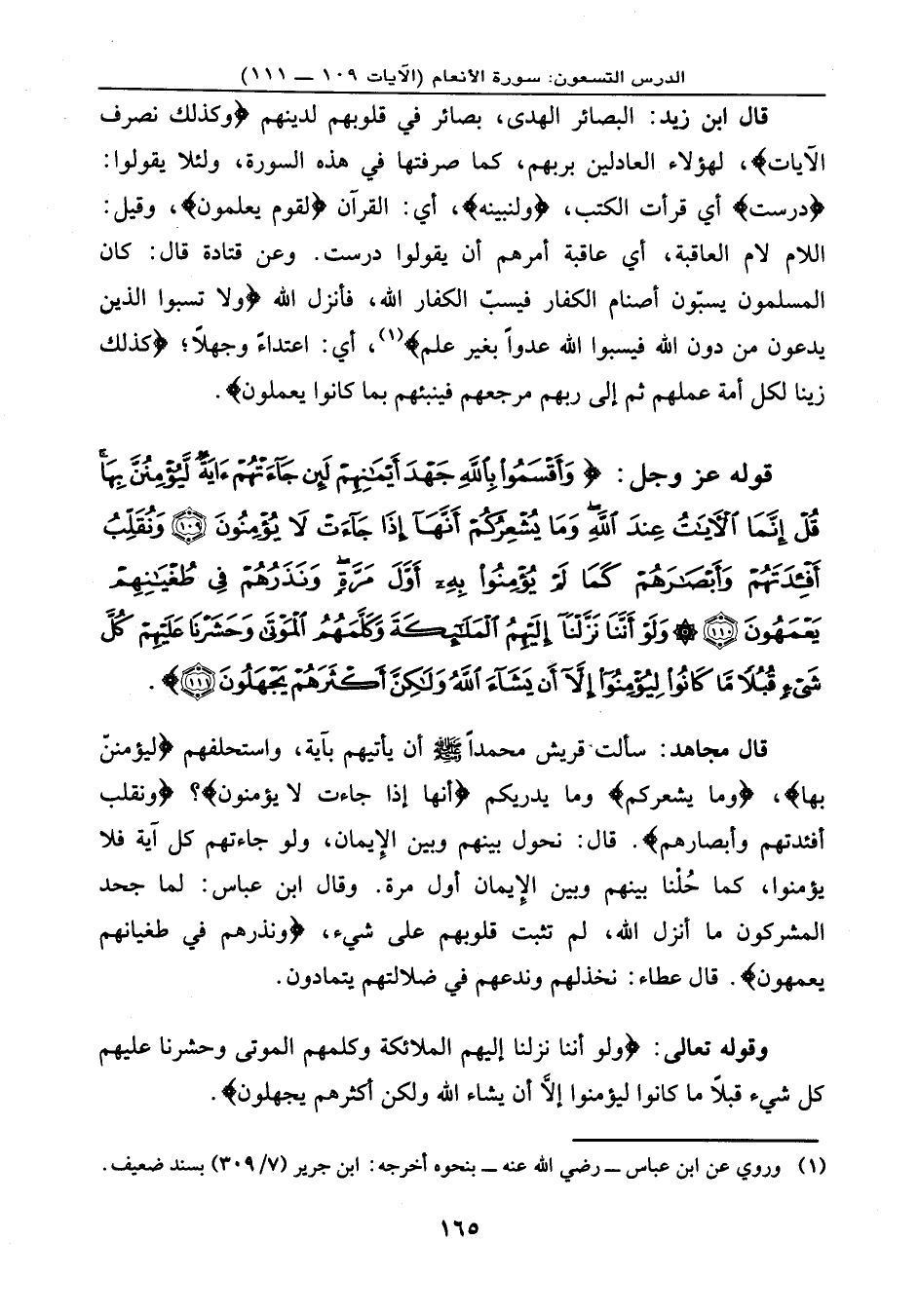 قال مجاهد: سألت قريش محمدًا - صلى الله عليه وسلم - أن يأتيهم بآية، واستحلفهم ... {لَّيُؤْمِنُنَّ بِهَا} ، {وَمَا يُشْعِرُكُمْ} وما يدريكم {أَنَّهَا إِذَا جَاءتْ لاَ يُؤْمِنُونَ} ؟ {وَنُقَلِّبُ أَفْئِدَتَهُمْ وَأَبْصَارَهُمْ} . قال: نحول بينهم وبين الإيمان، ولو جاءتهم كل آية فلا يؤمنوا، كما حُلْنا بينهم وبين الإِيمان أول مرة. وقال ابن عباس: لما جحد المشركون ما أنزل الله، لم تثبت قلوبهم على شيء، {وَنَذَرُهُمْ فِي طُغْيَانِهِمْ يَعْمَهُونَ} . قال عطاء: نخذلهم وندعهم في ضلالتهم يتمادون.