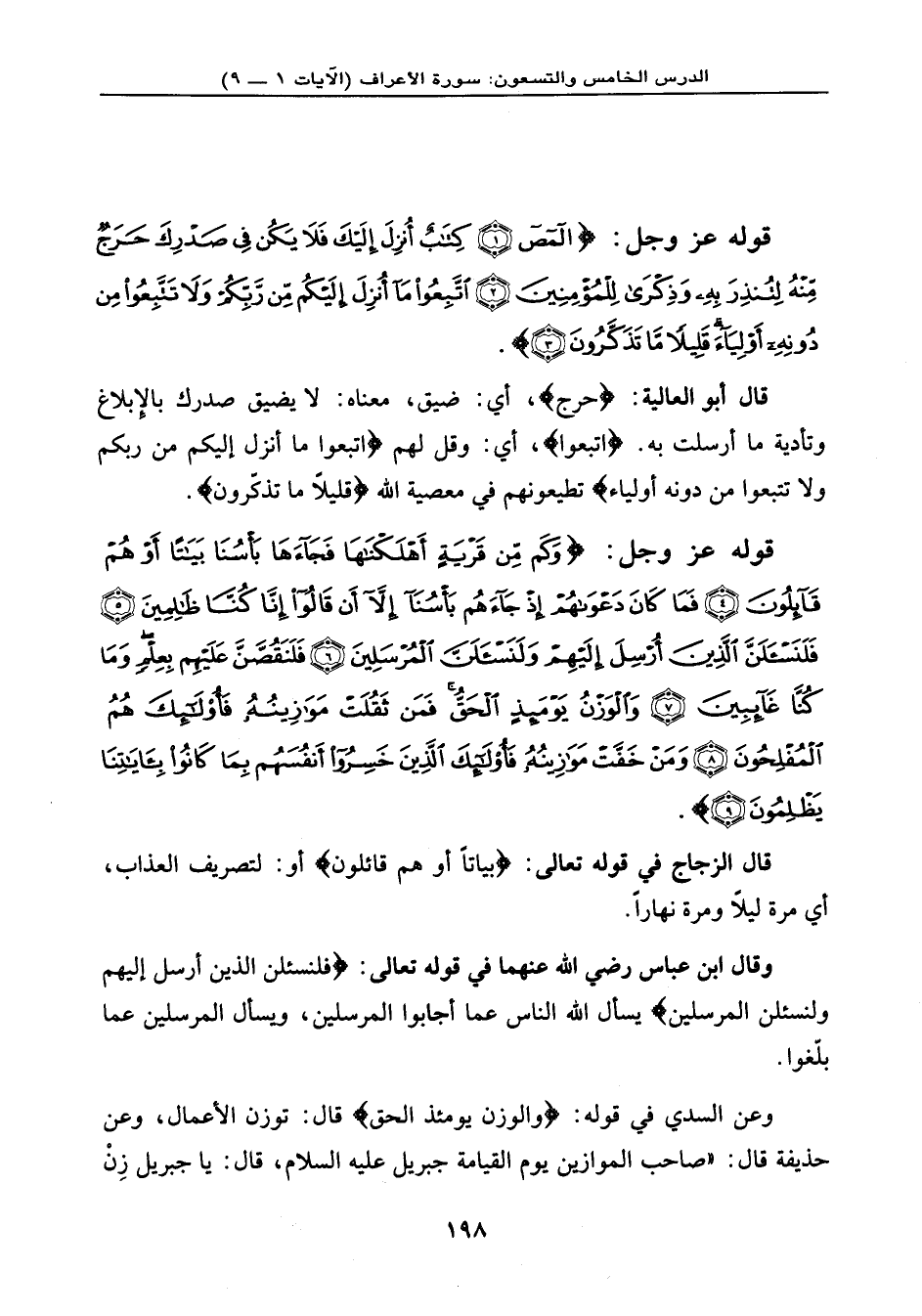 وعن السدي في قوله: {وَالْوَزْنُ يَوْمَئِذٍ الْحَقُّ} قال: توزن الأعمال، وعن حذيفة قال: (صاحب الموازين يوم القيامة جبريل عليه السلام، قال: يا جبريل، زِنْ