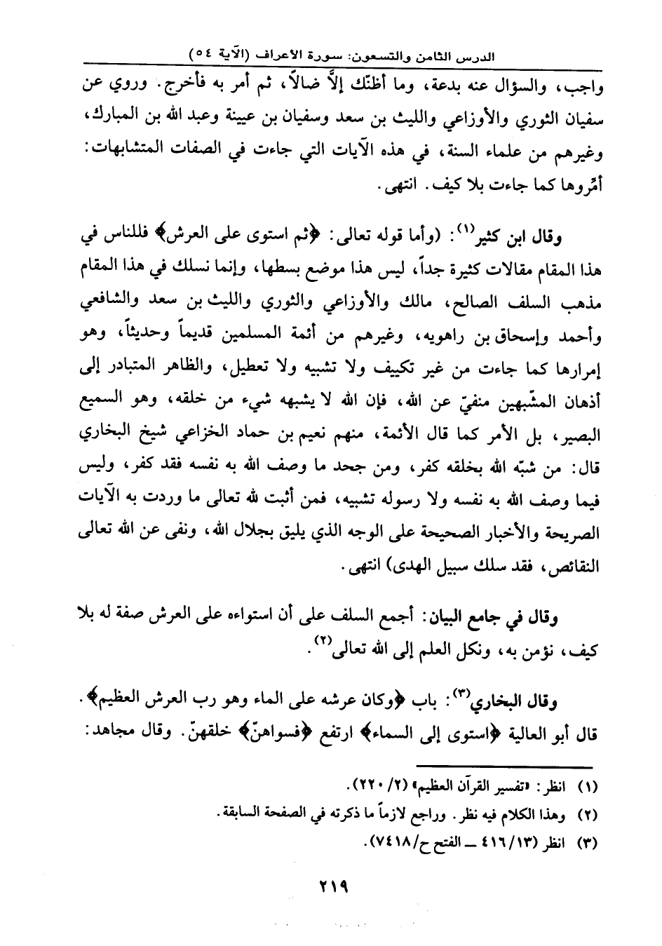 وقال ابن كثير: (وأما قوله تعالى: {ثُمَّ اسْتَوَى عَلَى الْعَرْشِ} فللناس في هذا المقام مقالات كثيرة جدًا، ليس هذا موضع بسطها، وإنما نسلك في