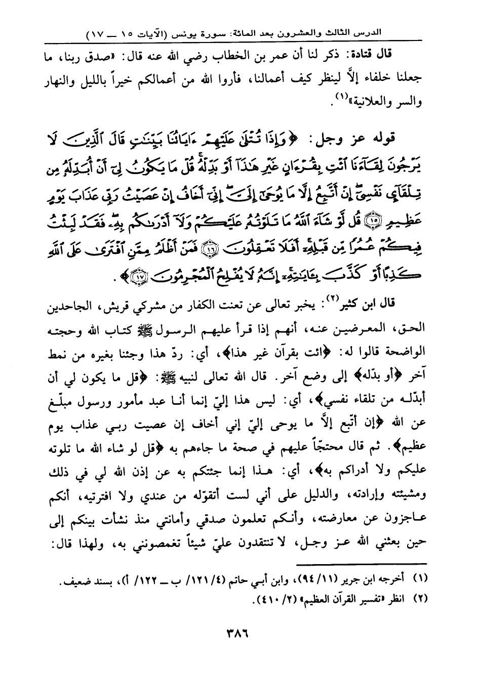 قال ابن كثير: يخبر تعالى عن تعنت الكفار من مشركي قريش، الجاحدين الحق، المعرضين عنه، أنهم إذا قرأ عليهم الرسول - صلى الله عليه وسلم - كتاب الله وحجته الواضحة قالوا له: {ائْتِ بِقُرْآنٍ غَيْرِ هَذَا} ، أي: ردّ هذا وجئنا بغيره من نمط آخر {أَوْ بَدِّلْهُ} إلى وضع آخر. قال الله تعالى لنبيه - صلى الله عليه وسلم -: {قُلْ مَا يَكُونُ لِي أَنْ أُبَدِّلَهُ مِنْ تِلْقَاءِ نَفْسِي} ، أي: ليس هذا إليّ إنما أنا عبد مأمور، ورسول مبلّغ عن الله: {إِنْ أَتَّبِعُ إِلا مَا يُوحَى إِلَيَّ إِنِّي أَخَافُ