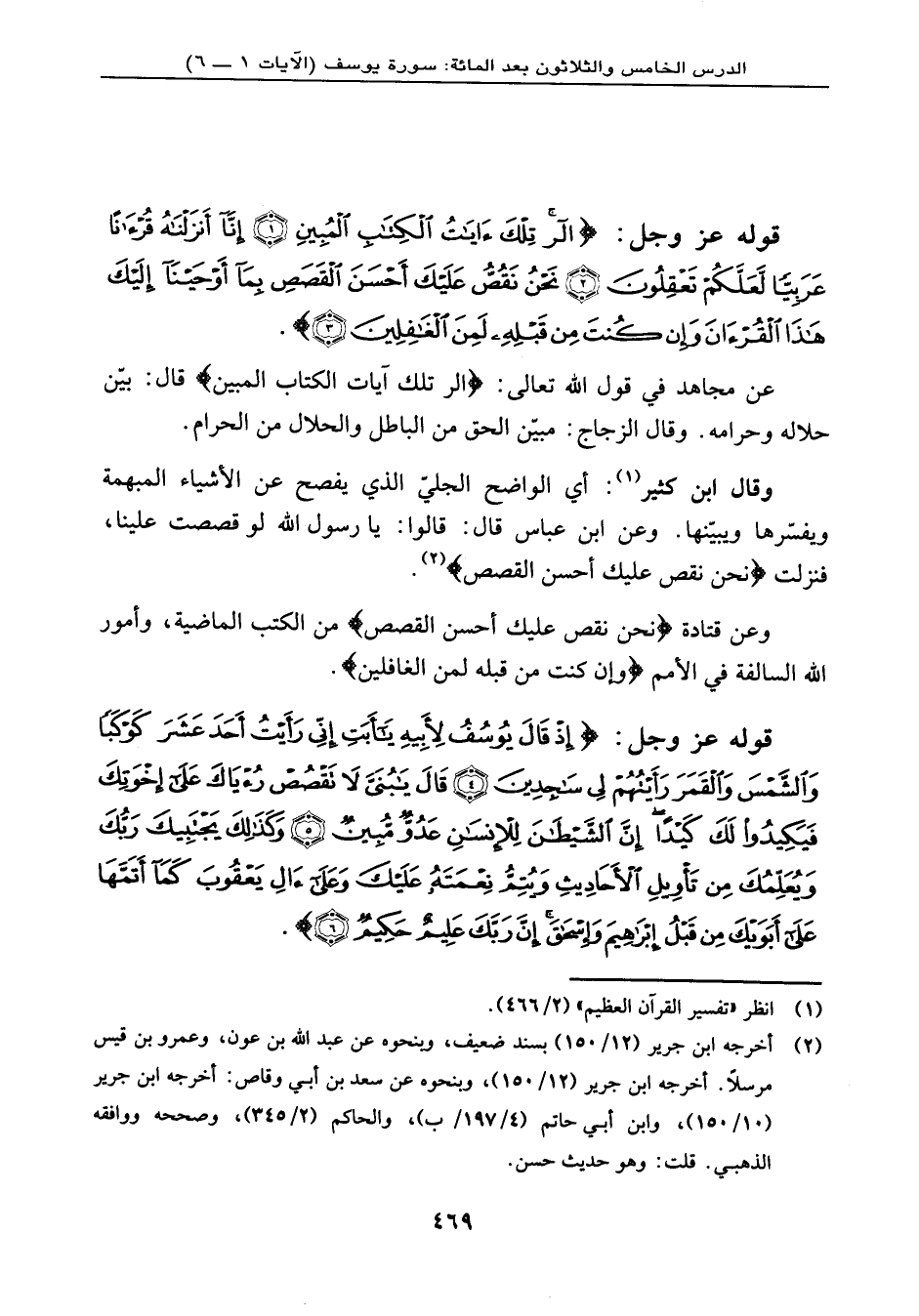 وقال ابن كثير: أي: الواضح الجليّ الذي يفصح عن الأشياء المبهمة ويفسّرها ويبيّنها. وعن ابن عباس قال: قالوا: يا رسول الله لو قصصت علينا، فنزلت: {نَحْنُ نَقُصُّ عَلَيْكَ أَحْسَنَ الْقَصَصِ} .