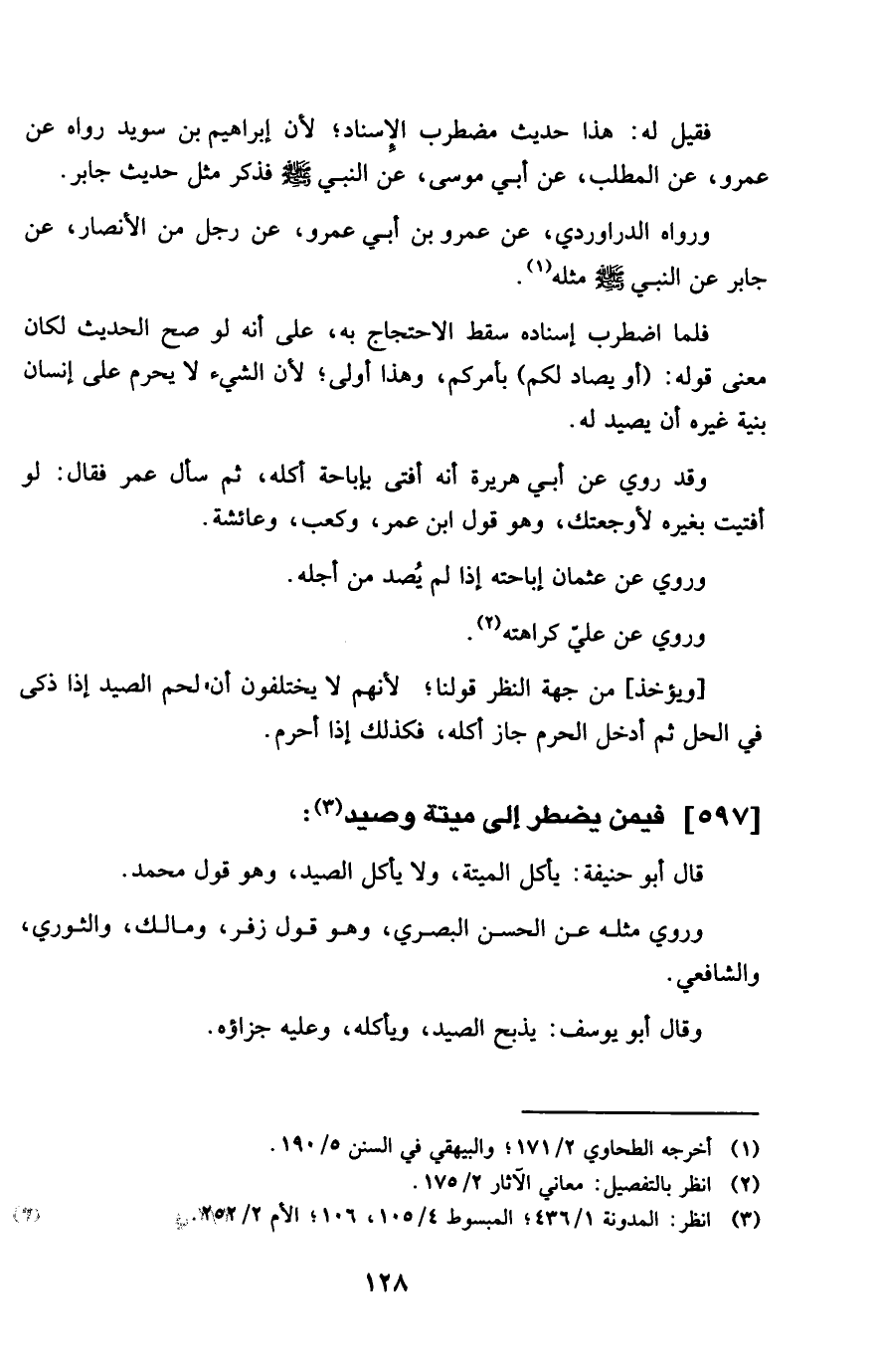 597 - فِيمَن يضْطَر إِلَى ميتَة وصيد