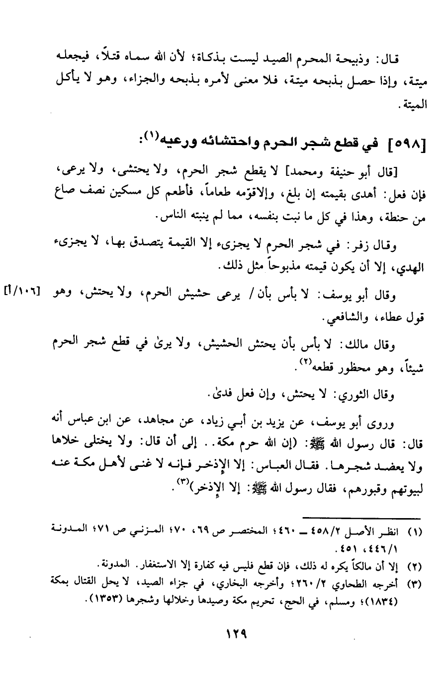 598 - فِي قطع شجر الْحرم واحتشائه ورعيه