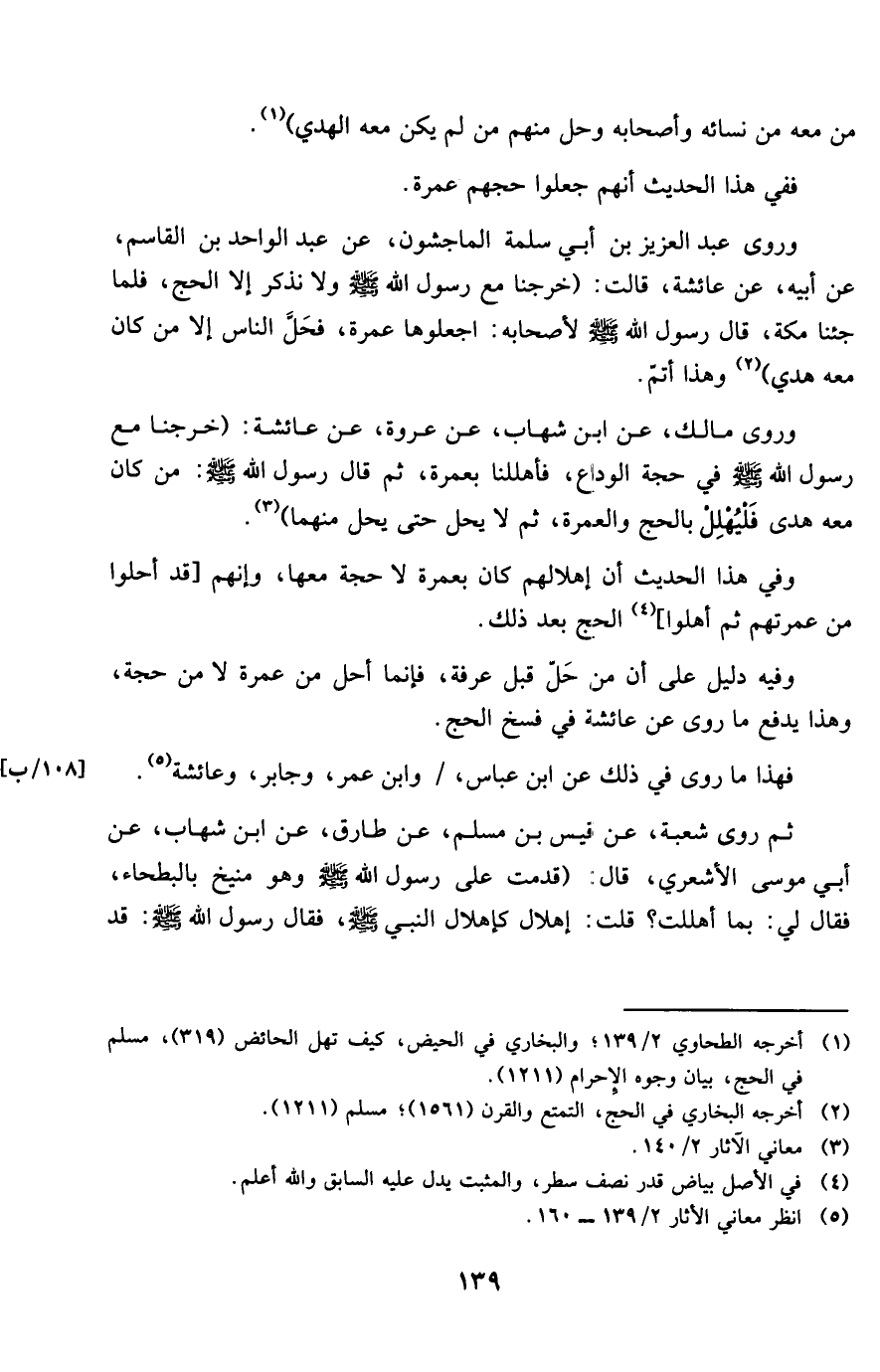 ثمَّ روى شُعْبَة عَن قيس بن مُسلم عَن طَارق عَن ابْن شهَاب عَن أبي مُوسَى الْأَشْعَرِيّ قَالَ قدمت على رَسُول الله صلى الله عَلَيْهِ وَسلم وَهُوَ منيخ بالبطحاء فَقَالَ لي بِمَا أَهلَلْت قلت إهلال كإهلال النَّبِي صلى الله عَلَيْهِ وَسلم فَقَالَ رَسُول الله صلى الله عَلَيْهِ وَسلم قد