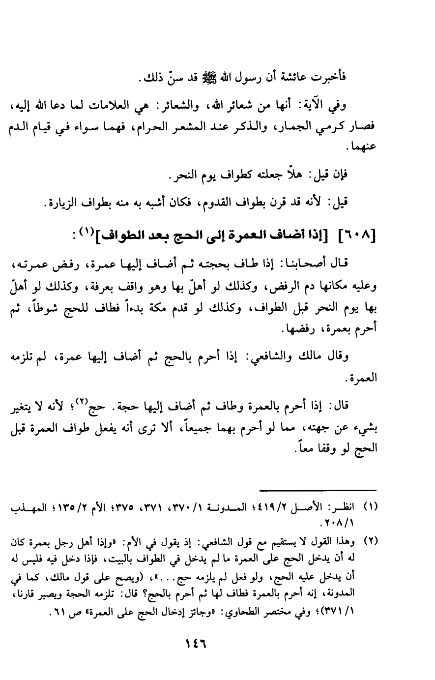 608 - إِذا أضَاف الْعمرَة إِلَى الْحَج بعد الطّواف