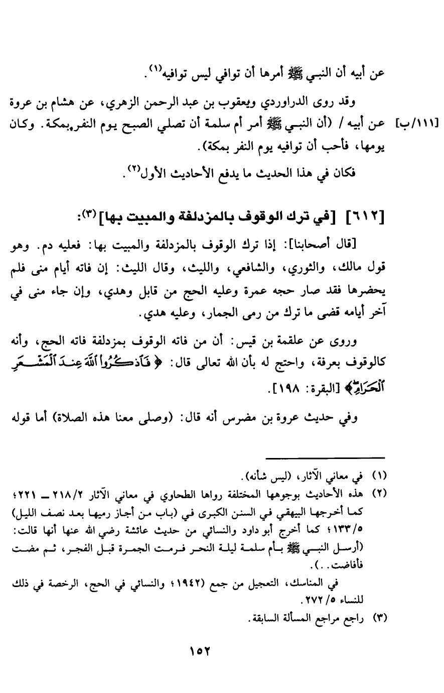 612 - فِي ترك الْوُقُوف بِالْمُزْدَلِفَةِ وَالْمَبِيت بهَا