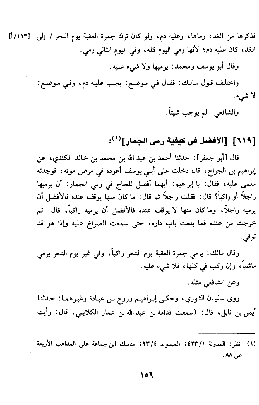 قَالَ أَبُو جَعْفَر حَدثنَا أَحْمد بن عبد الله بن مُحَمَّد بن خَالِد الْكِنْدِيّ عَن إِبْرَاهِيم بن الْجراح قَالَ دخلت على أبي يُوسُف أعوده فِي مرض مَوته فَوَجَدته مغمى عَلَيْهِ فَقَالَ يَا إِبْرَاهِيم أَيهمَا أفضل للْحَاج فِي رمي الْجمار أَن يرميها رَاجِلا أَو رَاكِبًا قَالَ فَقلت رَاجِلا ثمَّ قَالَ مَا كَانَ مِنْهَا يُوقف عِنْده فَالْأَفْضَل أَن يرميه رَاجِلا وَمَا كَانَ مِنْهَا لَا يُوقف عِنْده فَالْأَفْضَل أَن يرميه رَاكِبًا قَالَ ثمَّ خرجت من عِنْده فَمَا بلغت بَاب دَاره حَتَّى سَمِعت الصُّرَاخ عَلَيْهِ وَإِذ هُوَ قد توفّي