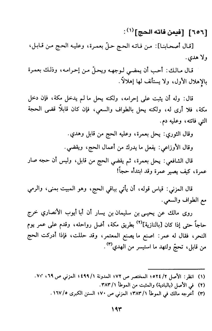 روى مَالك عَن يحيى بن سُلَيْمَان بن يسَار أَن أَبَا أَيُّوب الْأنْصَارِيّ خرج حَاجا حَتَّى إِذا كَانَ بالنازية بطرِيق مَكَّة أضلّ رواحله وَقدم على عمر يَوْم النَّحْر فَقَالَ لَهُ عمر اصْنَع مايصنع الْمُعْتَمِر وَقد حللت فَإِذا أدْركْت الْحَج من قَابل تحج ولتهد مَا اسْتَيْسَرَ من الْهَدْي
