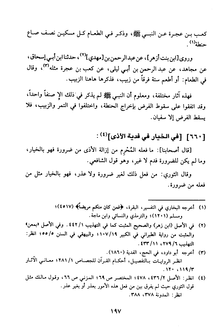 وروى ابْن بنت أَزْهَر عَن عبد الرَّحْمَن بن مهْدي وَحدثنَا ابْن أبي إِسْحَاق عَن مُجَاهِد عَن عبد الرَّحْمَن بن أبي ليلى عَن كَعْب بن عجْرَة مثله وَقَالَ فِي الطَّعَام أَو أطْعم سِتَّة فرقا من زبيب فَذكرهَا هَا هُنَا الزَّبِيب