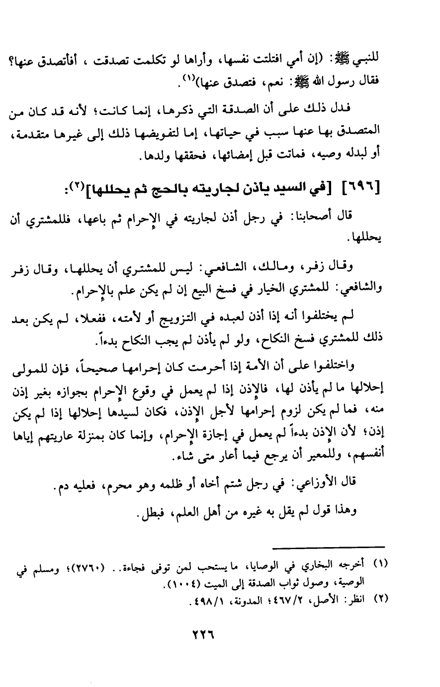 696 - فِي السَّيِّد يَأْذَن لجاريته بِالْحَجِّ ثمَّ يحللها