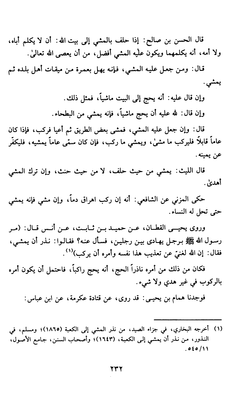 قَالَ الْحسن بن صَالح إِذا حلف بِالْمَشْيِ إِلَى بَيت الله أَن لَا يكلم أَبَاهُ وَلَا أمه أَنه يكلمهما وَيكون عَلَيْهِ الْمَشْي أفضل من أَن يَعْصِي الله تَعَالَى