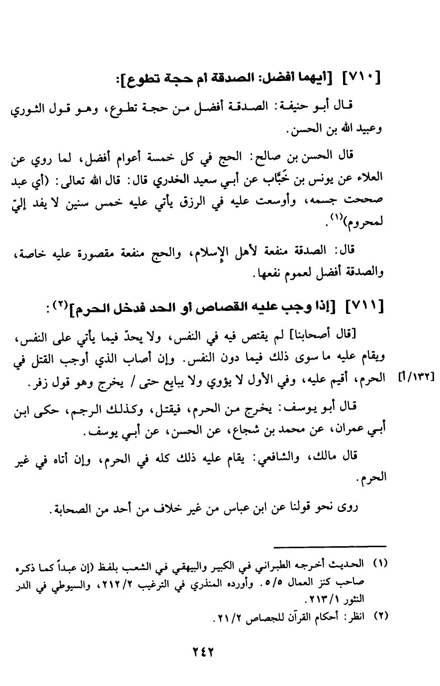 711 - إِذا وَجب عَلَيْهِ الْقصاص أَو الْحَد فَدخل الْحرم