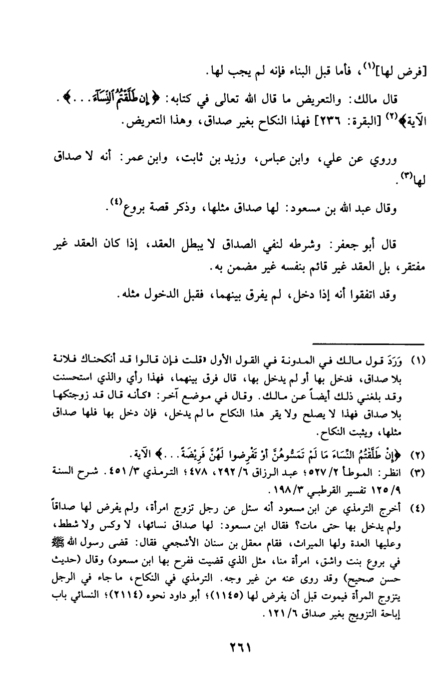 قَالَ مَالك والتعريض مَا قَالَ الله تَعَالَى فِي كِتَابه {إِن طلّقْتُم النِّسَاء} الْآيَة (الْبَقَرَة 236) فَهَذَا النِّكَاح بِغَيْر صدَاق وَهَذَا التَّعْرِيض