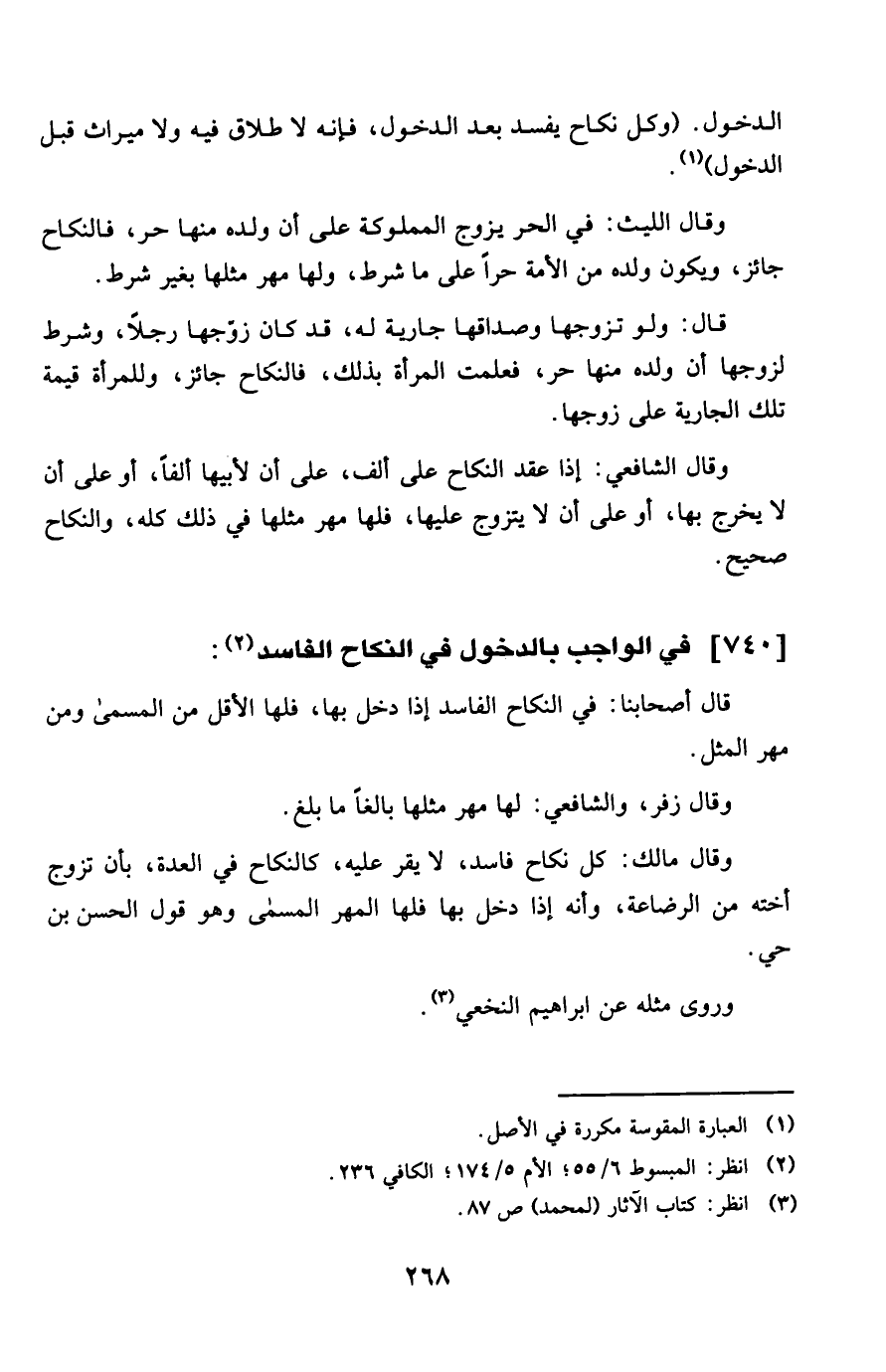 740 - فِي الْوَاجِب بِالدُّخُولِ فِي النِّكَاح الْفَاسِد