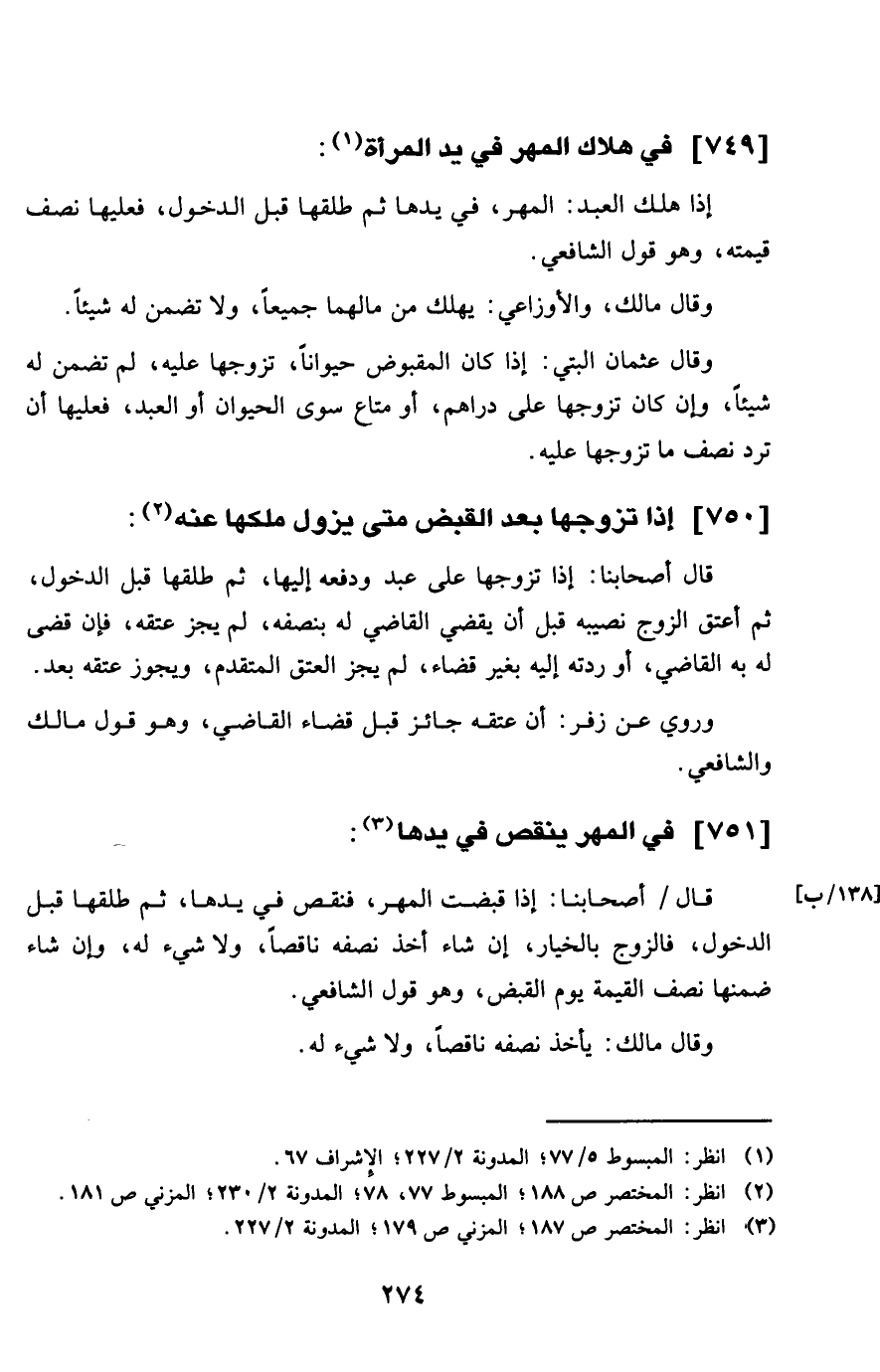 749 - فِي هَلَاك الْمهْر فِي يَد الْمَرْأَة