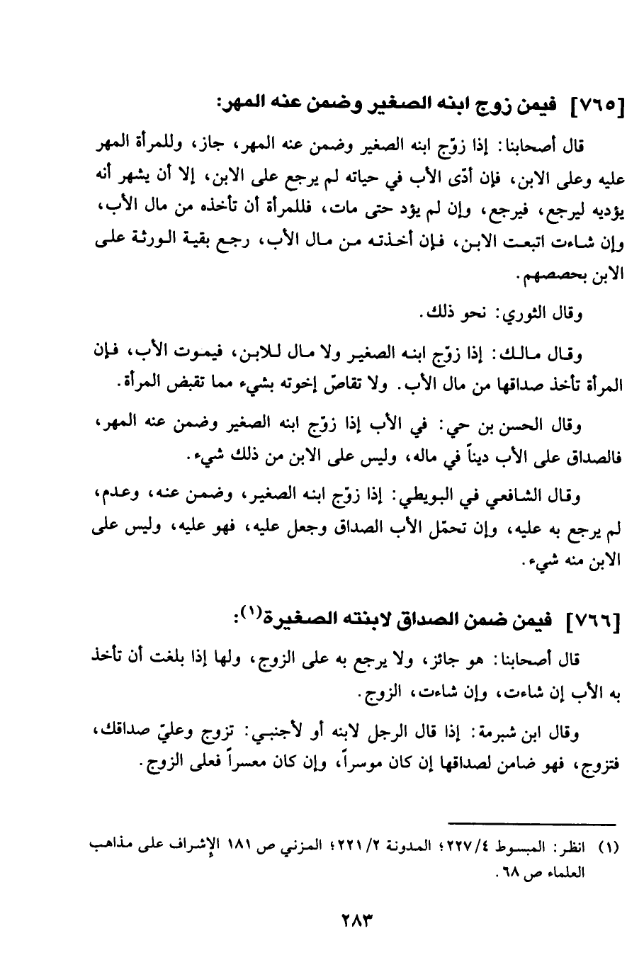 765 - فِيمَن زوج ابْنه الصَّغِير وَضمن عَنهُ الْمهْر