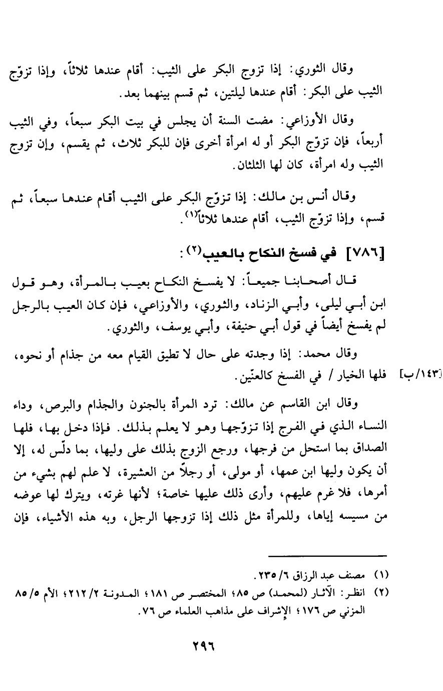 786 - فِي فسخ النِّكَاح بِالْعَيْبِ
